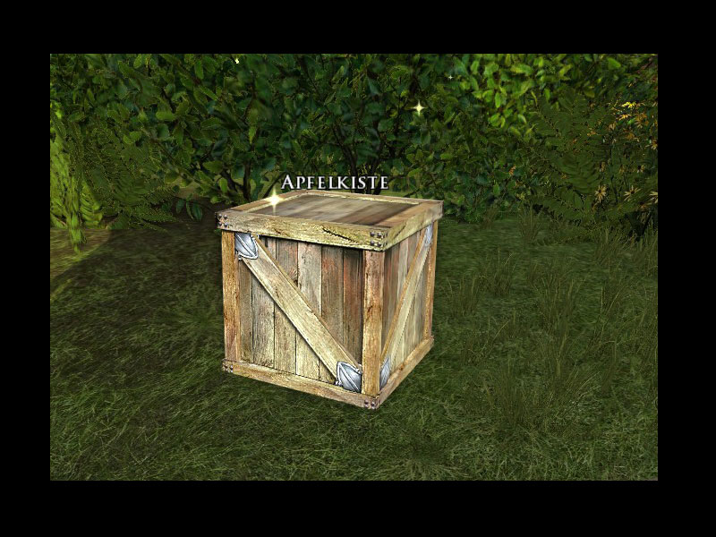 'Äpfel bitte! Hallo, ich brauche Äpfel! Und nicht nur ein paar. Bitte, macht Euch direkt an die Arbeit!Die Kiste befindet sich irgendwo hinter Eurem Stand. Nun macht schon, ich habe nicht den ganzen Tag Zeit!'