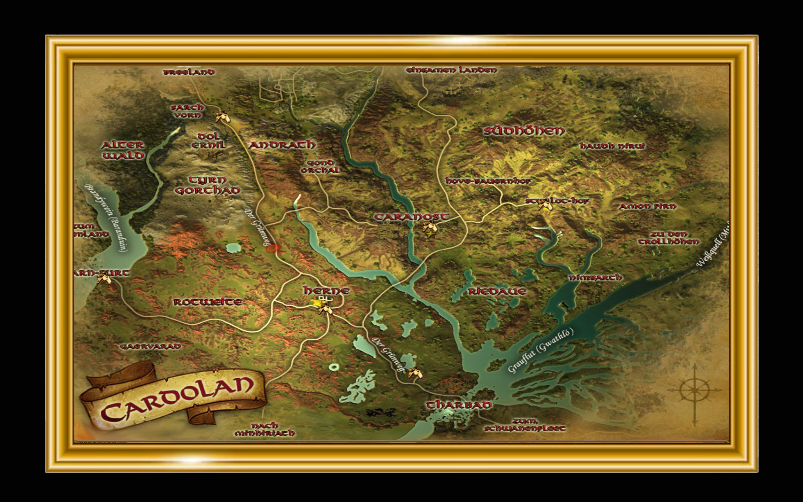 'Wir können noch einen weiteren Tag auf dem Grünweg weiterreisen, bevor wir die Ruinen erreichen, bei denen Narndir sein Lager aufgeschlagen hat. Unsere Warnung, dass Saruman die freien Völker Mittelerdes verraten hat, muss den Anführer der Dúnedain erreichen, und Narndir weiß, wo man ihn finden kann. Das wird für mich kein freudiges Wiedersehen ... aber es muss sein.'Die Straße verlässt Herne im Osten, führt jedoch im Norden am Dorf vorbei, und in diese Richtung müssen wir reisen.'