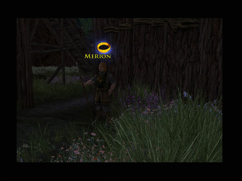 Merion, einer der Wachmänner von Mooshang, versucht, bei der Reparatur des Dorfs nach dem Angriff der Uruk-hai mitzuhelfen.