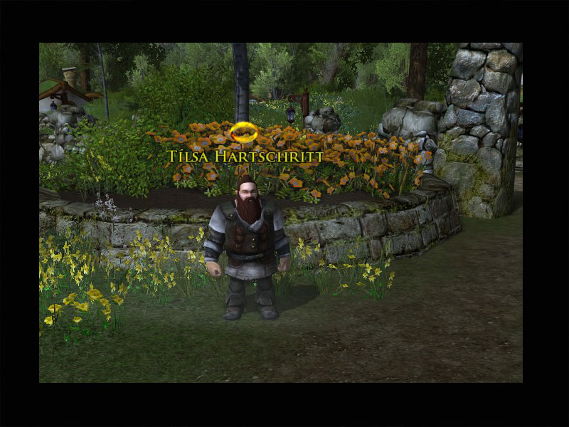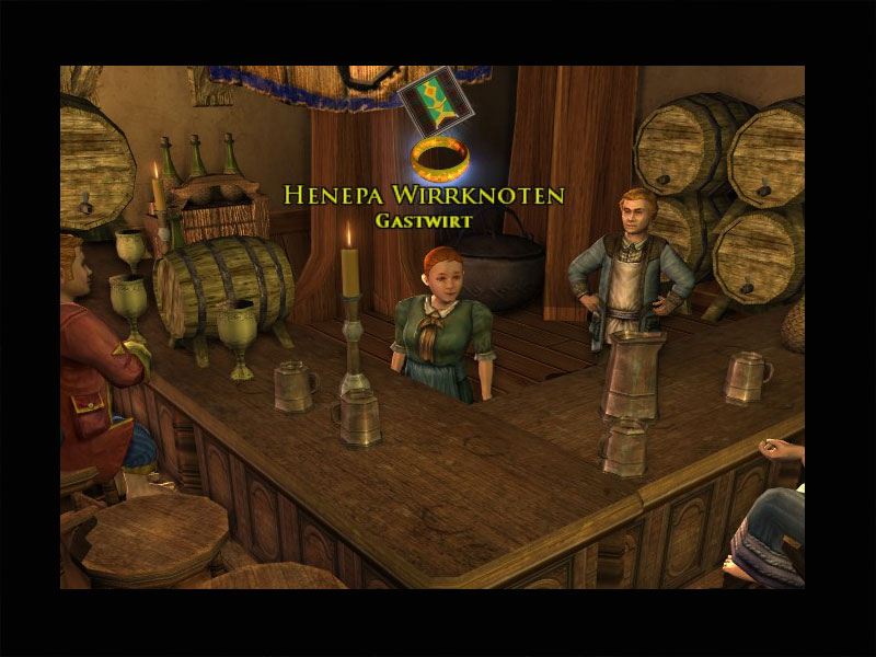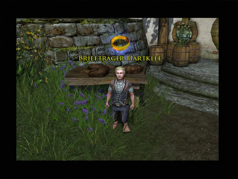 'Angesichts Eurer Kleidung müsst Ihr jemand mit Geschmack sein. Vielleicht könnt Ihr mir ja helfen! Ich besuche hier eine Freundin - ich bin zum ersten Mal bei ihr zu Gast und möchte ihr gerne ein Geschenk mitbringen, ein "Mathom", wie man hier in der Gegend sagt. Ich kann mich nur leider nicht entscheiden, was ich ihr schenken soll. Ich will ihr auf keinen Fall irgendetwas Belangloses schenken. Könntet Ihr Euch vielleicht im Dorf umhören, was die Leute glauben, was ein gutes Mathom ausmacht?'
