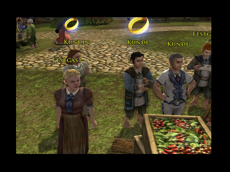 'Wo sind denn all die Einfaltspinsel? Die anderen Verkäufer sind abgehauen, vermutlich um das Fest zu genießen. Wenn die nicht bald wieder aufkreuzen, werde ich ihnen das Fell über die Ohren ziehen!Wie Ihr sicher seht, könnte ich etwas Hilfe gebrauchen. Wärt Ihr bereit, etwas mit anzupacken? Es müssen eine Menge Bestellungen ausgeführt werden.'