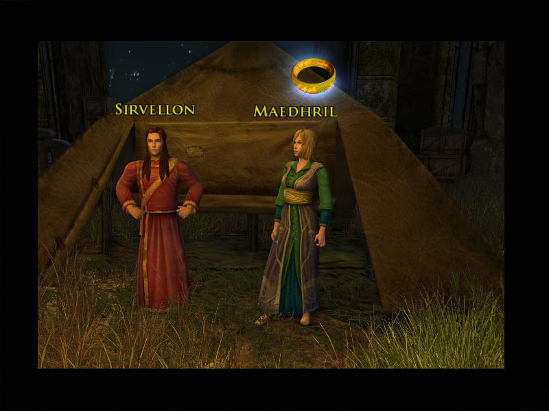 'Mein Ehemann ist mir lieb und teuer, aber er sieht nur, was direkt vor ihm liegt. "Wir müssen den Orkkriegern ein Ende bereiten, Maedhril," hat er mir gesagt, "denn ihre Schwerter sind tödlich und scharf." Da hat er nicht unrecht, aber die Pfeile ihrer Kundschafter machen mir mehr Sorgen, denn sie können uns aus größerer Entfernung treffen.''Würdet Ihr nach Caranost gehen und die Treppe finden, die gleich hinter der Brücke in die Höhe führt? An der Spitze eines der Türme brennt ein Feuer, und ich möchte wissen, ob die Ork-Bogenschützen dieses Lager von der Brüstung aus treffen können. Geht dorthin und schaut in unsere Richtung. Ich will wissen, was man von dort aus sehen kann.'