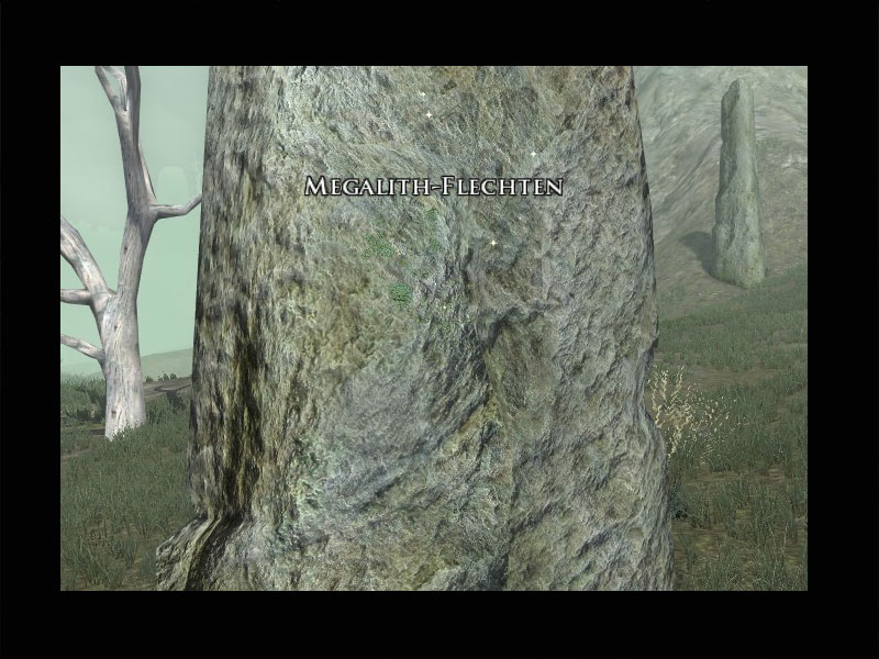 'Einer unserer Kundschafter kam mit Berichten über große Steinkreise auf der anderen Seite des Hügels jenseits der Straße zurück.''Solltet Ihr einmal dorthin geraten, würdet Ihr wohl Ausschau nach graugrünen Flechten halten, die auf den Steinen wachsen? Die haben heilende Eigenschaften, zerstören aber auch allmählich die Steine. Kratzt sie vorsichtig ab und bringt sie mir, dann bekommt Ihr eine Belohnung!'