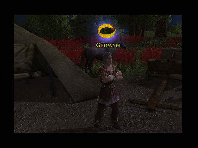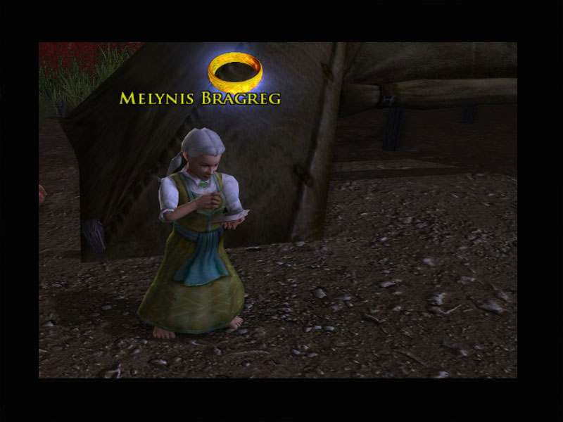 'Wie aufregend und gleichzeitig frustrierend! Ich bin sicher, dass diese Schriftrolle Antworten birgt, aber ich kann sie nicht lesen. Aber ich kenne jemanden, der es kann!''Auf der anderen Seite des Grünwegs, bei der nördlichen Grenze zu Andrath, hat eine Karawane von Reisenden bei der Straße ein Lager aufgeschlagen. Ich bin einen Teil des Wegs nach Bree mit ihnen gereist, aber ein Rad splitterte, also mussten sie einen Halt einlegen und ich reiste allein weiter. Unter ihnen ist eine Gelehrte - eine vom kleinen Volk, das man Hobbits nennt! Sie weiß sicher, wie man dies hier liest! Bringen wir die Schriftrolle zu Melynis!'
