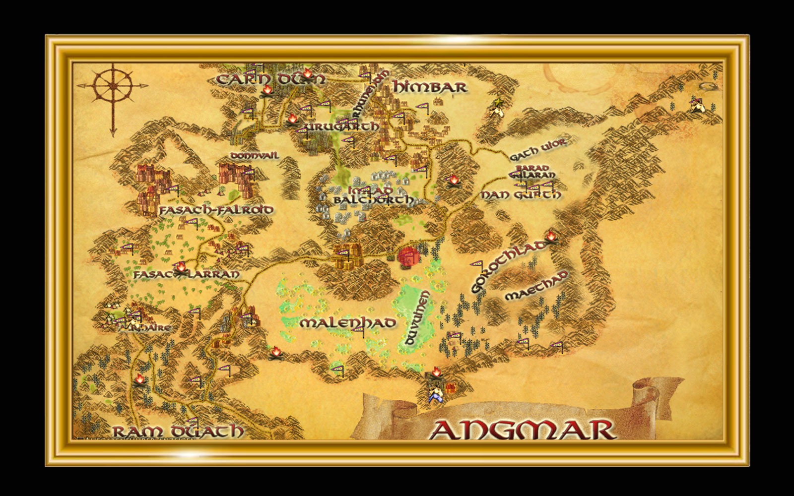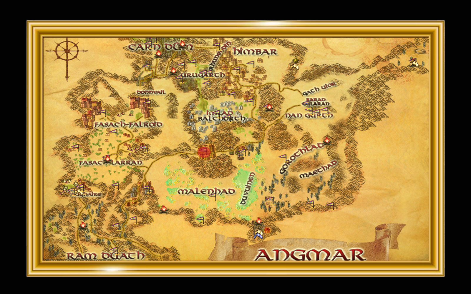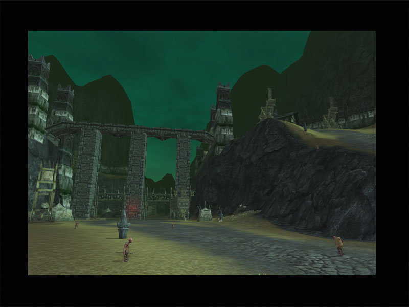 DAS TOR DER SCHATTEN IST DAS GEWALTIGE ÄUSSERE TOR ZUR FESTUNGSSTADT CARN DUM. GESCHICHTEN ÜBER DIE SCHRECKEN IN IHREM INNEREN GIBT ES ZUHAUF. DOCH HIER, WEITAB VOM KRIEG, KÖNNTE DIE KLEINE STADT AM FUSSE DES TORES FAST ALLTÄGLICH AUSSEHEN, WÜRDEN NICHT DIE SYMBOLE IN JEDER STRASSE UND AN JEDEM TURM AN ANGMARS MACHT ERINNERN. DIE STRENGE MIENE DER WACHEN LÄSST ERAHNEN, DASS SIE NICHT DIE LEISESTE REBELLION ODER BEKUNDUNGEN BEI DEN BÜRGERN DULDEN, DIE DEN WÜNSCHEN DES FALSCHEN KÖNIGS ENTGEGENLAUFEN.