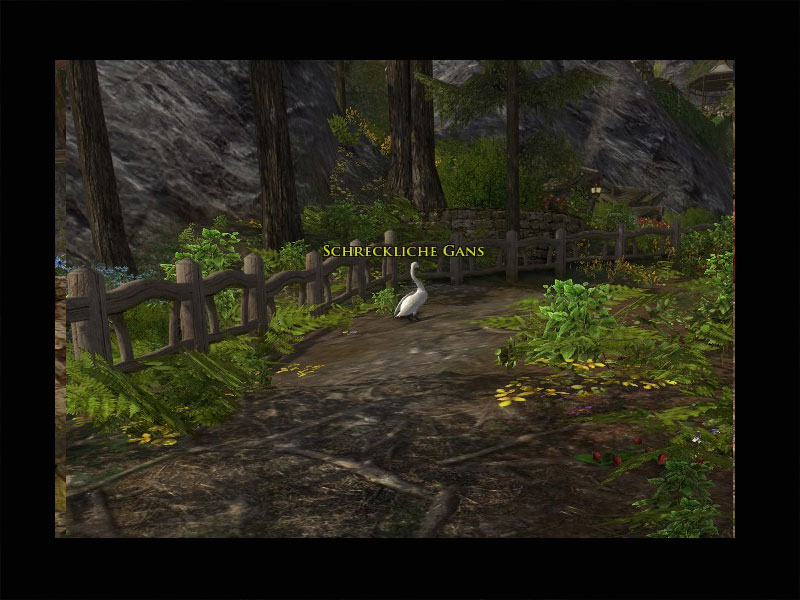 'Es fehlt eine besonders schwierige Gans, die ich normalerweise genau im Auge behalten muss. Wie Ihr Euch denken könnt, fehlte mir dafür aber die Zeit!''Jetzt fürchte ich, dass die Gans entlaufen ist und für Chaos im Dorf sorgt. Das ... nun, wäre nicht das erste Mal, dass das passiert! Passt gut auf, wenn Ihr Euch auf die Suche macht, diese Gans ist wirklich gerissen!'