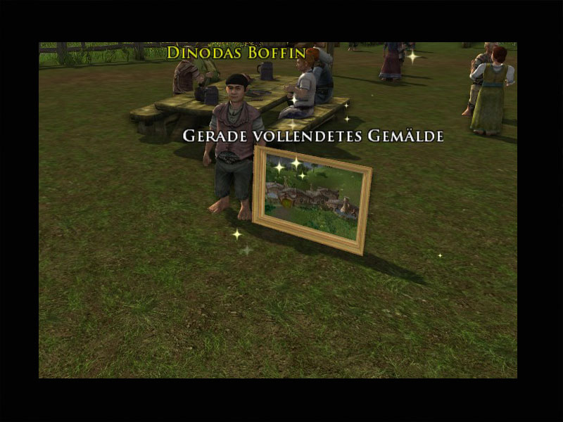 'Oh, hallo! Das ist aber eine schöne Überraschung!''Ich bin auf dem Weg in die Fernen Auen, um die Tochter meine Base Prisca in ihrem neuen Heim zu begrüßen! Da sie nicht mehr zwanzig ist, hat sie sich ein Haus in Neuhausen gekauft. Die Kinder werden ja so schnell erwachsen, findet Ihr nicht auch?''Prisca hat mit ihren anderen Kindern ein Einzugsfest für Angelika organisiert und Ihr wäret bestimmt ebenfalls herzlich willkommen! Ein paar aus Priscas Brut sind bereits vor einigen Tagen aufgebrochen, weil sie noch ein passendes Geschenk für ihre Schwester auftreiben wollten. Ach ... bitte sagt Prisca lieber nicht, dass ich Euch das erzählt habe. Sie mag es nicht, wenn ich ihre Kinder als Brut bezeichne. Darüber brütet sie nach, wisst Ihr?'Bingo kichert kurz über seinen eigenen Witz.'Das sollte ich mir aufschreiben. Aber jedenfalls ... solltet Ihr in Feierlaune sein: Ich treffe meine Vettern und Basen in der Mitte von Reepfeld. Das liegt nordöstlich von hier in den Fernen Auen.'