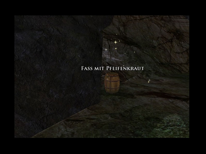 'Bevor ich Euch erzähle, wo dieser Idiot von Tuk ist, nach dem Ihr sucht, müsst Ihr etwas für mich erledigen. Wisst Ihr, ich bin im gesamten Auenland für mein hervorragendes Pfeifenkraut bekannt und das bedeutet, dass hier eine Menge Leute vorbeikommen, die neues Kraut bei mir kaufen wollen.Nun, meine diesjährige Ernte ist noch nicht reif, aber ich bin ja ein schlauer Hobbit, wisst Ihr. Als die Bären noch Ihren Winterschlaf hielten, habe ich ein Fass mit Tabakkraut in einer ihrer Höhlen versteckt, falls es mal zu einem Engpass bei der Lieferung kommen sollte.Geht zu den Bärenhöhlen im Süden und bringt mir das Fass. Sobald Ihr zurückkommt, erzähle ich Euch alles, was ich über diesen Tuk weiß.'