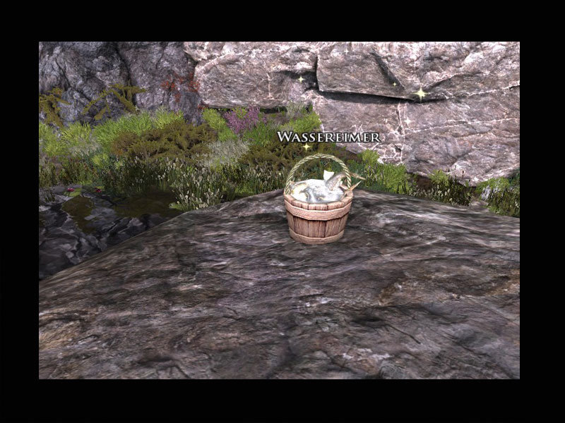'Ihr seid nicht die Erste, die mir freiwillig Hilfe anbietet, aber ich hoffe, Ihr seid zuverlässiger als die letzte Person.''Ich brauche einen Eimer mit sauberem Flusswasser für die Zubereitung verschiedener Heilmittel. Ich habe schon einen Mann nach Westen geschickt, um mir eben jenes Wasser zu beschaffen, und er ist zwar unversehrt zurückgekehrt, hat aber den Eimer zurückgelassen! Ich wollte ihn nicht in Gefahr bringen, aber er hatte sich immerhin freiwillig gemeldet. Er hätte mir immerhin meinen Eimer zurückbringen können.''Könntet Ihr ihn mir zurückholen? Seiner Beschreibung nach müsste er auf einer felsigen Stufe neben dem Fluss stehen, westlich von hier, und noch immer voller Wasser sein.'