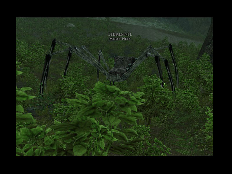 'Eine Sache weiß ich mit Sicherheit über Spinnen, sie lassen sich gewöhnlich mit der ganzen Brut nieder. An der Spitze der Brut gibt es immer eine Königin - ein Weibchen, das sich um alle anderen Spinnen kümmert, sie bewacht und ihnen Befehle erteilt.''So wie ich das sehe, gibt es in dieser Senke ebenfalls eine solche Königin. Aber ich weiß nicht genau wo sie sich aufhält, da ich sie nicht gesehen habe.''Seid vorsichtig! Wenn Ihr die Königin gefunden habt, dann lasst es mich wissen, auf dass ich Euch entlohnen kann. Die Senke befindet sich etwas südlich des Flusses ... Ihr werdet wissen, dass Ihr richtig seid, wenn Ihr die Spinnweben an den Bäumen seht.'