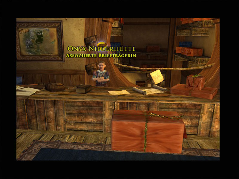 'Ich wusste es, Mehelliel.''Wenn Postmeister Stolzfuß davon gewusst hätte, hätte er dem schon längst ein Ende gemacht. Nach all der Arbeit, die er in den Post-Schnelldienst gesteckt hat, um für einen guten Ruf zu sorgen, hätte er niemals zugelassen, dass eine Verschwörung den Namen in den Dreck zieht. Ich muss dem Postmeister sofort davon berichten!'Briefträger Gruber holt ein Blatt hervor und steckt den Federkiel in die Tinte. Er fängt an zu schreiben und schaut dabei gelegentlich in sein Hauptbuch.'Mehelliel, bitte verzeiht, aber ich muss Euch bitten, diese Nachricht zu Postmeister Stolzfuß in Michelbinge zu bringen. Falls Euch der Brief irgendwie abhanden kommen sollte, merkt Euch, dass Neuhausen im letzten Monat 33 Sendungen aus den Nahen Auen erhalten hat. Der Postmeister hat seine eigenen Aufzeichnungen, und ich empfehle ihm, diese mit meinen zu vergleichen.'Briefträger Gruber beendet seinen Brief, versiegelt ihn und übergibt ihn Euch.'Ich verlasse mich auf Euch, Mehelliel. Irgendetwas geht da im Auenland vor sich!'