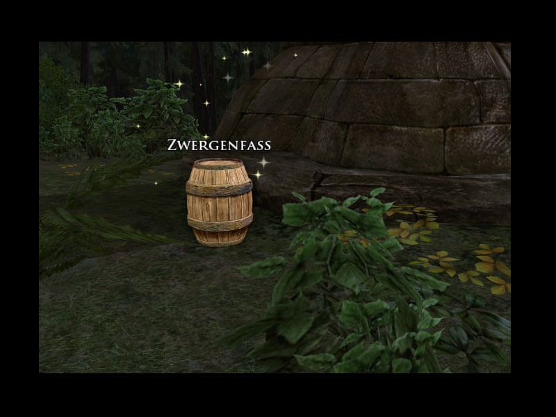 'Nun, ich vermute, Ihr seid einem Becher unseres berühmten Gründrachenodem-Bieres nicht abgeneigt, oder? Nun, wir haben sicher noch genug davon! Aber sagt einmal, ich habe im Auenland schon viel von Euch gehört … Man behauptet, Ihr seid besonders gut darin, Probleme von anderen zu lösen! Nun, ich hätte da auch ein kleines Problemchen beizusteuern.Das Braufest der Vier Viertel wird gerade vorbereitet und der alte Gerd möchte einen Teil unserer Spezialreserve auszeichnen lassen. Für dieses Spezialgebräu verwendet Gerd jedoch diese alten Fässer aus Ered Luin, in denen die Zwerge früher Branntwein gelagert haben. Jedes Jahr liefert ihm der Kaufmann, den er kennt - ein Zwerg - ein Fass. Dieses Jahr scheint es jedoch, als ob der arme Kerl von riesigen, bösartigen Spinnen in der Nähe von Oberbühl angegriffen wurde. Und bei seiner überstürzten Flucht ist das Fass vom Wagen gefallen.Ich frage mich, ob Ihr nicht eben nach Oberbühl gehen und nordwestlich der Stadt nach dem Fass suchen könntet? Für Gerd bedeutet es eine ganze Menge, an der Beurteilung der Biere mit seinem besten Gebräu teilzunehmen!'