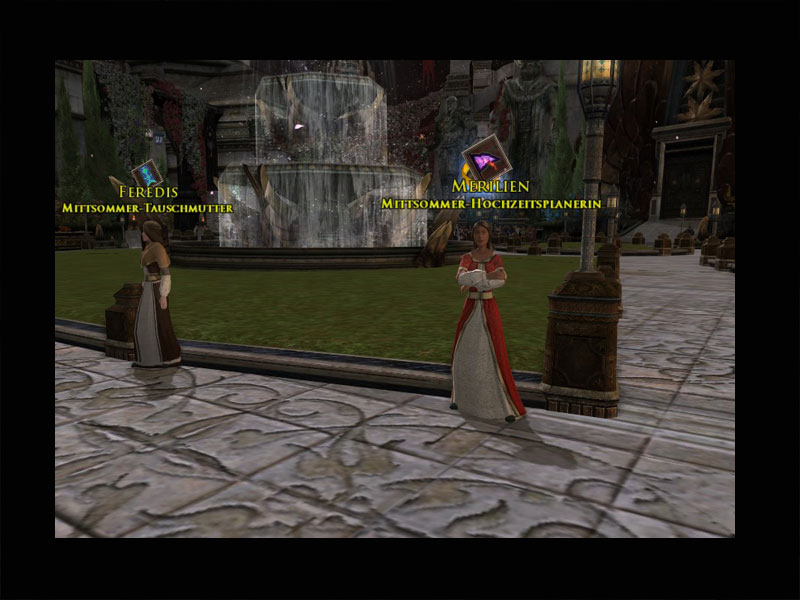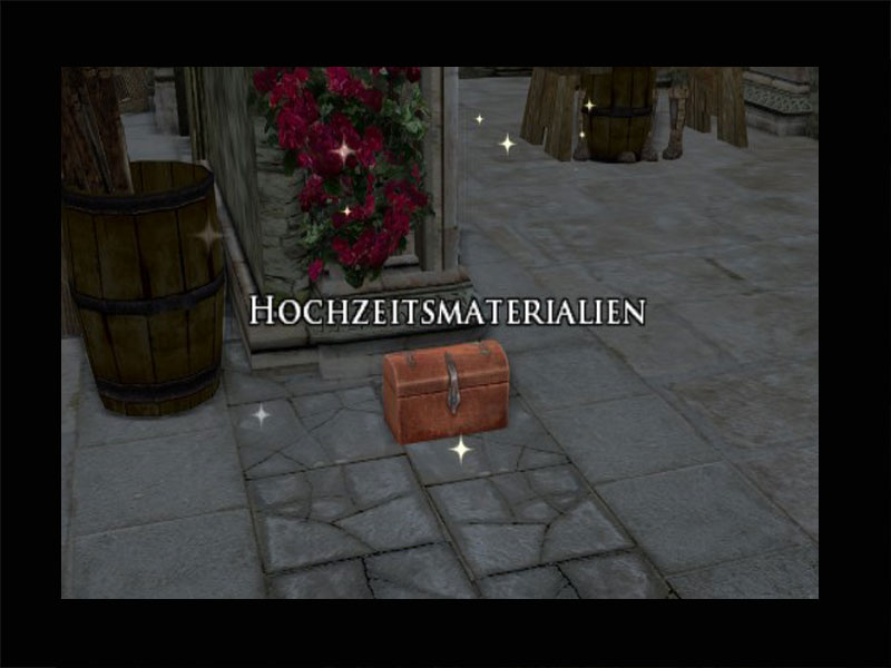'Eine perfekte Hochzeit kann die schönste Erinnerung in einer Beziehung sein, und ich sorge bei all meinen Veranstaltungen dafür, dass diese Erinnerung ausschließlich mit Freude verbunden ist. Da ist nur das Beste gut genug, deshalb lasse ich mir aus dem ganze Land die feinsten Waren schicken. Erlesene Speisen, edle Seide, exotische Blumen - ich erfülle jeden Wunsch meiner Paare!''Eigentlich hätte eine meiner Lieferungen längst eintreffen müssen, aber scheinbar ist der Bote anderweitig beschäftigt. Solltet Ihr im dritten Ring sein, wäre ich Euch sehr dankbar, wenn Ihr die nicht gelieferten Kisten für mich abholen könntet. Ihr erkennt die Kisten natürlich anhand ihrer Qualität.'