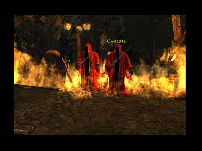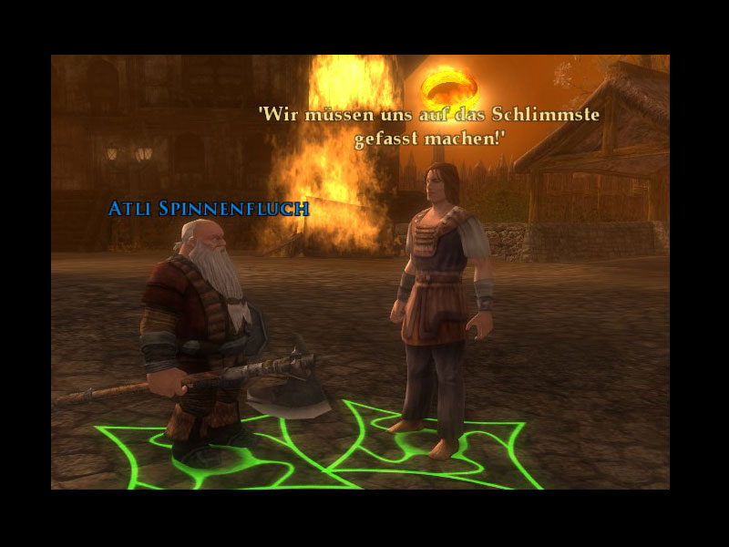 Nachdem Ihr die Gefangenen besiegt habt, hat Hugo Baumschneider Euch erzählt, dass die Schwarzwold-Räuber einen Versuch unternommen haben, Archet einzunehmen und dass Amdir bei der Verteidigung des Gasthauses geholfen hat. Amdir befindet sich irgendwo weiter vorne. Ihr solltet ihm bei der Verteidigung des Gasthauses zum Tobenden Dachs behilflich sein.Nachdem Hugo gefallen ist, hat seine arme Frau Peggi sich um seine Überreste bemüht.