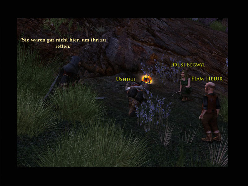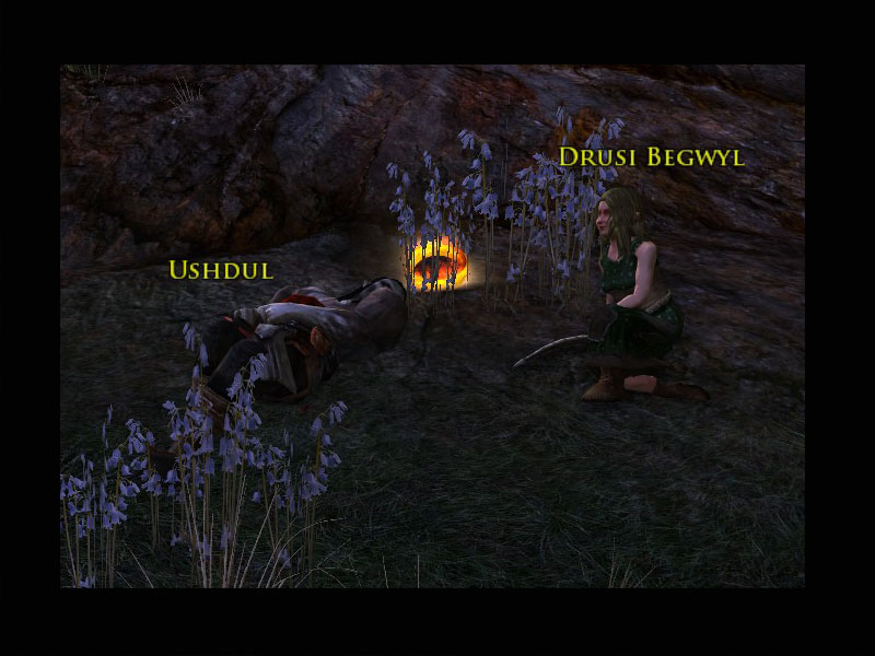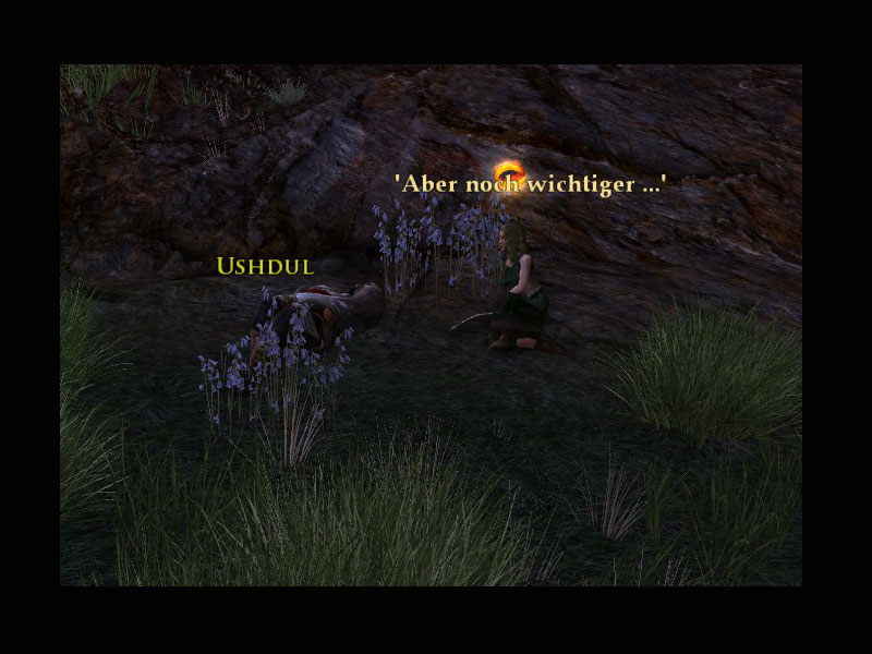 Flam Helur, einer der Starrenjäger von Clegur, hat zugestimmt, Euch zu dem Uruk zu bringen, den er und seine Partnerin Drusi gefangen nahmen.