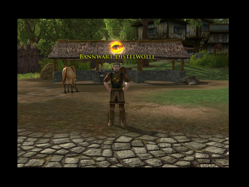 'Vielleicht könnt Ihr helfen, Iarla. Die Einwohner von Archet werden in großer Gefahr sein, wenn die Schwarzwolds den Plan ausführen, den wir letzte Nacht mit angehört haben. Der hiesige Hauptmann, ein Mann namens Farnbach, mag mein Aussehen nicht und hört deshalb nicht auf meine Warnungen.''Sprecht bitte für mich mit ihm und seht, ob Ihr ihn nicht wachrütteln könnt!''Jeder Moment, den ich hier verbringe, ist ein Moment, in dem sich mein wahrer Schützling weiter blindlings in unfassbares Unglück stürzt! Der Schwarze Reiter, den Ihr letzte Nacht gesehen habt, sucht nach einem Beutlin, aber es ist nicht unser Freund Mundo.'