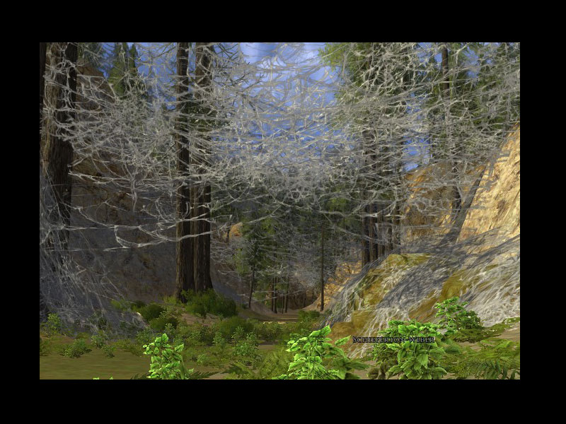 'Das ist für Euch. Mit diesem Trank solltet Ihr die Spinnennetze überwinden können! Aber Ihr müsst Euch beeilen! Der Trank wird schnell trocken.Oh, da ist noch etwas. Es gibt Geschichten über einen laufenden Baum im Schiefertonwald, ähnlich wie im Alten Wald. Wenn es ihn gibt, schläft er vielleicht, und er kann für Zweibeiner gefährlich sein, wie es auch vom Alten Wald erzählt wird, aber ich glaube, er wird den Spinnen auch nicht freundlich gesonnen sein.Jetzt los mit Euch, bevor der Trank austrocknet, sonst könnt Ihr die Netze nicht überwinden!'