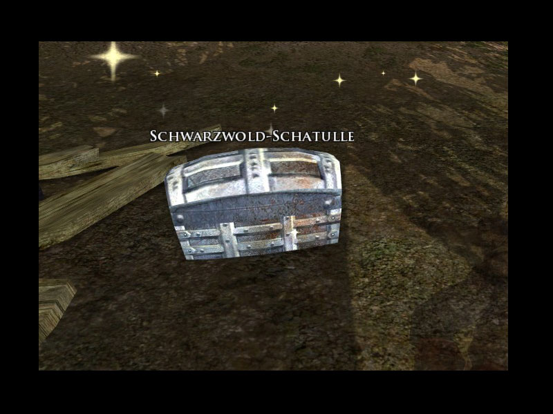 'Kein Zweifel, die Schwarzwold-Räuber sind auf der Flucht. Sie versuchen, sich in Lagern im ganzen Chetwald neu zu sammeln, doch sie haben in Archet eine schwere Niederlage erlitten.Die Räuber haben ihr altes Lager bei Archet geräumt und eine große Schatulle mitgenommen, die sie zu einem ihrer kleineren Lager im Chetwald gebracht haben, nordöstlich von Schlucht. Wenn Ihr uns diese Schatulle bringen würdet, könnten wir mit ihrem Inhalt jenen helfen, die von den Schwarzwolds beraubt wurden. Es gibt zahlreiche Wachfeuer entlang der Straße, Ihr müsst also das richtige finden.Wir haben mit diesen Schurken noch viele Rechnungen offen, Nimcueniel. Wenn Ihr mit der Schatulle zurückkommt, helft Ihr damit der ganzen Bevölkerung.'