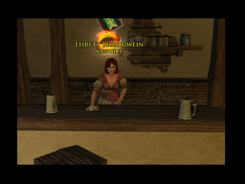 'Der Mann, der durch das Dorf gezogen ist - er erinnert mich von seiner Art her an Streicher - hat gesagt, dass er "den Helden von Archet" sucht. Ich kann nur vermuten, dass er Euch meinte!Er sagte, dass die Angelegenheit äußerst dringend sei. Wenn ich Euch sähe, sollte ich Euch zum Gasthaus "Schluchtenflechter" schicken, wo er Euch erwartet. Das Gasthaus befindet sich südlich von hier in der Mitte von Schlucht.Er machte auf mich einen sehr düsteren Eindruck. Ich würde sofort nach Schlucht reisen und mit der Eigentümerin Lisbett Honigwein sprechen. Sie müsste wissen, wo sich der Mann aufhält.'