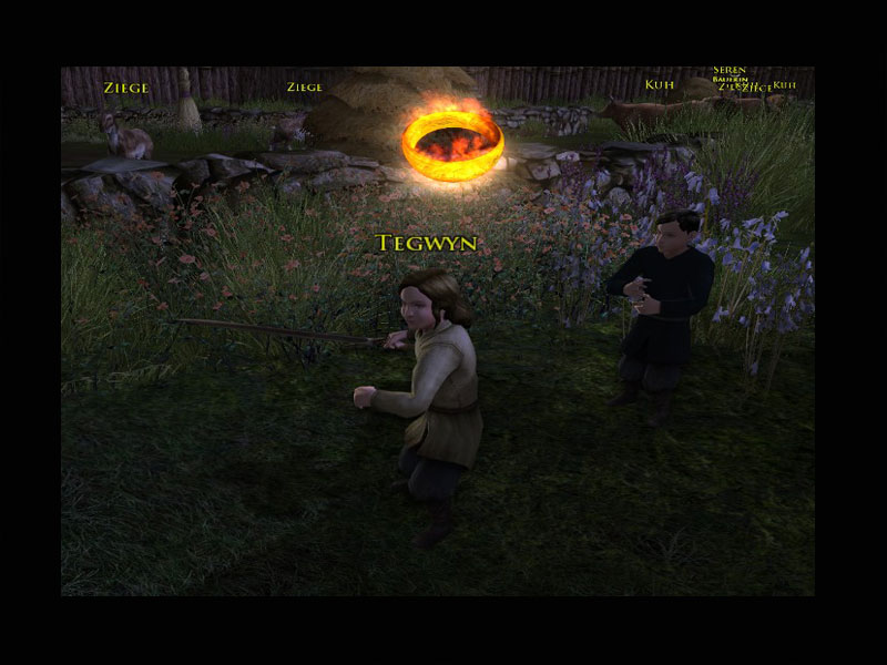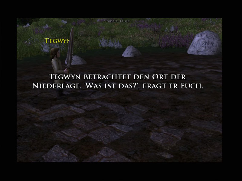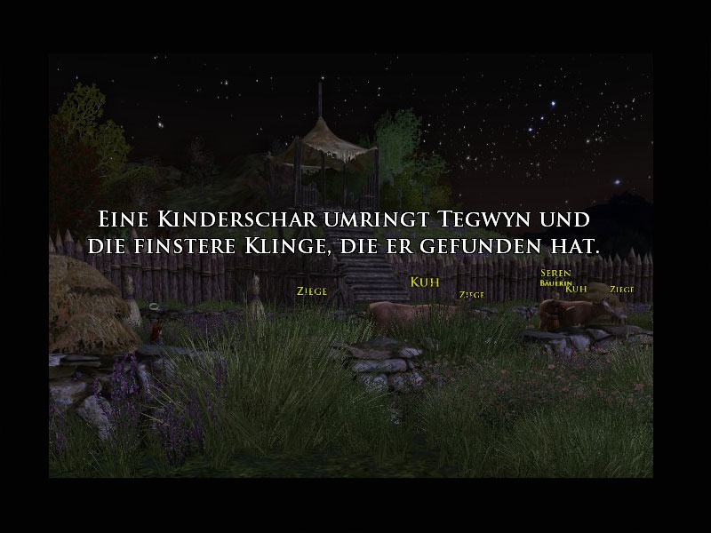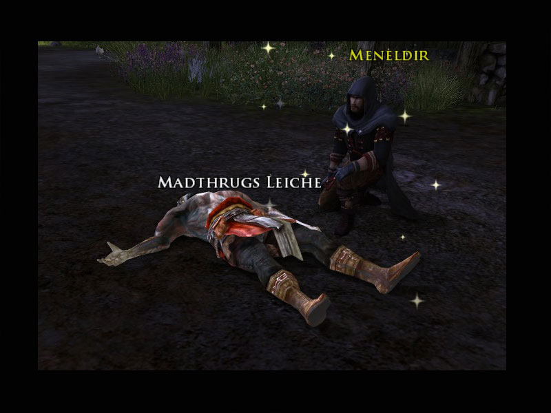 'Einige Einwohner von Mooshang haben Verletzungen erlitten, gegen die wir machtlos sind. Wir werden später um sie trauern, aber erst einmal müssen wir uns auf die konzentrieren, denen wir helfen können.'Meneldir überreicht Euch ein kleines Paket mit Verbandszeug und einen Beutel mit bitter riechender Salbe.''Das sind meine letzten Vorräte, aber es gibt keinen Grund, sie für später aufzubewahren. Bringt die Verbände und die Salbe zu den verletzten Einwohnern in der Nähe. Hoffentlich sind ihre Verletzungen nicht allzu schwer und wir können ihre Schmerzen damit etwas lindern.'