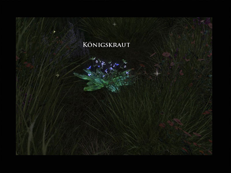 'Ich bin schon seit viele Jahren fern meiner Heimat, Elvandis. Ich war einst ein Dúnedain, ein Waldläufer des Nordens, zu deren Aufgaben der Schutz dieser Lande und deren Bewohner gehörte. Die anderen Pflichten ... tja, die dürften noch genauso fern wie immer sein und betreffen mich nicht mehr. Ich werde dazu heute nichts weiter sagen.''Aber ein friedliches Dorf wurde überfallen und einige seiner Bewohner erschlagen. Helft Ihr mir, meinen Vorrat am Heilkraut Königskraut wieder aufzufrischen und die Kreaturen in der Umgebung zu bezwingen, die eine Gefahr für Mooshang darstellen könnten? Königskraut erkennt man an seinem süßen Duft und der Beschaffenheit seiner Blätter. Sucht es im Hügelland östlich des Dorfes.'