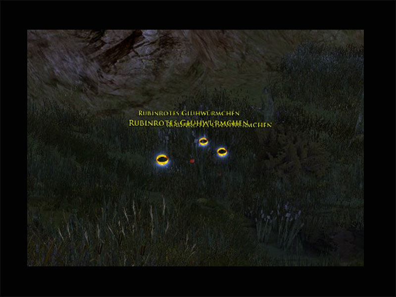 'Rot, die Farbe der Leidenschaft, der Rosen von Imloth Melui und des Bluts. Wärt Ihr von einer Hochzeit ganz in Rot nicht auch begeistert? Also, in der Farbe Rot. Es ist eine so ausdrucksstarke Farbe, die sich wunderbar mit anderen Farbtönen ergänzen lässt.''Glühwürmchen bevorzugen feuchte Orte mit hohem Gras. Rubinrote Glühwürmchen finden sich allerdings nur im Binsenmoor. Also, begebt Euch ins Auenland und schaut, ob Ihr ein paar der Glühwürmchen erwischen könnt.''Füllt diese Laternen bitte mit den kleinen Schätzchen, ja? Und kommt dann gleich zu mir, wir wollen sie ja nicht länger gefangen halten als nötig.'
