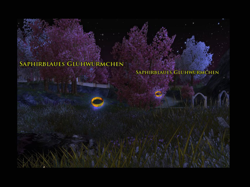 'Blaue Glühwürmchen leuchten wie Kerzenlicht, das sich an geschliffenen Saphiren spiegelt. Für meine Kunden nur das Beste!''Glühwürmchen bevorzugen feuchte Orte mit hohem Gras. Saphirfarbene Glühwürmchen finden sich allerdings nur an einem See bei Dol Ringwest, nahe der Elbenstadt Duíllont.''Füllt diese Laternen bitte mit den kleinen Schätzchen, ja? Und kommt dann gleich zu mir, wir wollen sie ja nicht länger gefangen halten als nötig.'