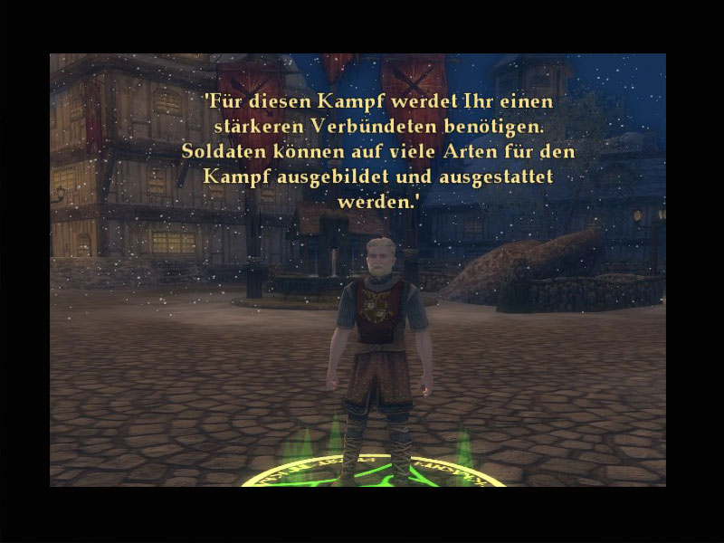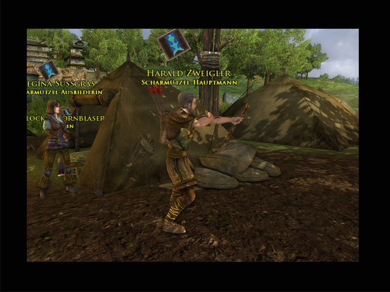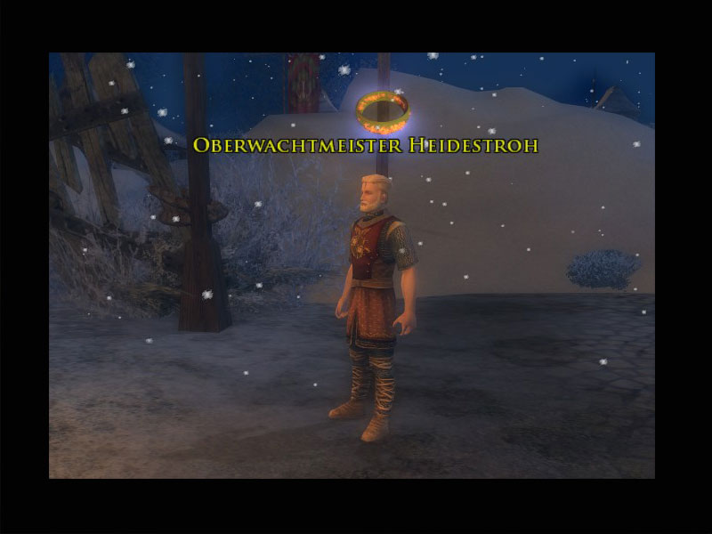 'Wir haben hier ein Problem, dem wir uns dringend annehmen müssen. Banditen und Raufbolde haben die Ablenkung durch den Feind genutzt, um Bree unter ihre Kontrolle zu bringen. Die Leute dort brauchen dringend Hilfe. Wir haben gerade erst davon erfahren und ich sehe die Bestätigung in den Befehlen, die Ihr besorgt habt.Ihr solltet Euch sofort mit Oberwachtmeister Heidestroh treffen. Er hat direkt vor dem Südtor ein kleines Lager aufgeschlagen, um die Situation zu beobachten. Er wird Euch über alles Weitere informieren, sobald Ihr dort seid.Sprecht noch einmal mit mir und ich werde Euch den Weg zu Oberwachtmeister Heidestroh zeigen.'