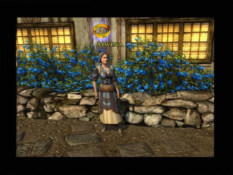 'Ich heiße Alwena und ich leite die Halle des Handwerks hier in Herne. In letzter Zeit ist die Kundschaft allerdings spärlicher geworden und ich würde dem gerne auf den Grund gehen! Könntet Ihr ein paar ermutigende Worte zu meinen Nachbarn sprechen und ihnen ausrichten, dass selbst in Zeiten der Dunkelheit die Arbeit in Handwerk und Handel die Tage heller erscheinen lässt?''Das wird ihnen sicher helfen!'