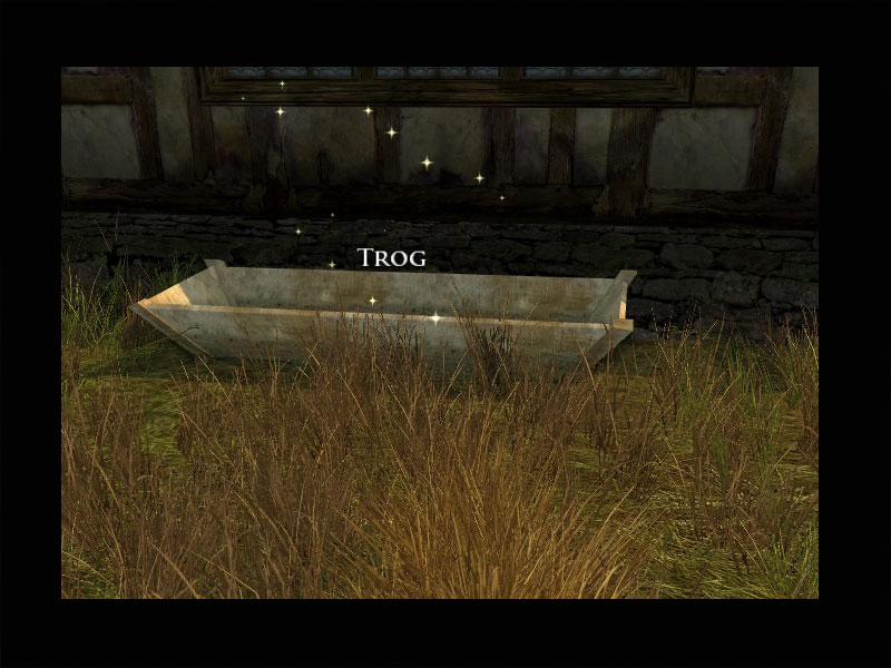 'Was habt Ihr dort draußen auf der Straße getan, Fremde? Sagt nicht, dass Ihr nichts von den bösartigen Wesen gehört habt, die hier umherstreifen? I-Ich mag kein mutiger Mann sein, aber etwas an diesen Reitern ist falsch. Wenn ich in meinem ganzen Leben nie wieder einen sehe, sterbe ich zufrieden.''Wenn Ihr wieder hinausgehen wollt, könntet Ihr in Herne nach meinen Schafen suchen? Alle fünf haben sich erschreckt und sind aus ihrem Gatter geflohen. Streichelt sie einfach etwas, dann beruhigen sie sich. Ich will nicht, dass sie in die Wildnis flüchten.''Hier ... bevor Ihr aufbrecht, nehmt etwas von diesem Heu und füllt ihren Trog vor dem Gatter.'