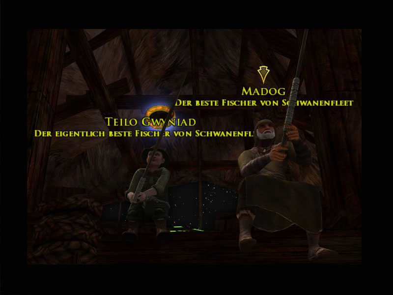 'Ich habe gehört, dass Ihr und die Kundschafter in Schwierigkeiten geraten seid. Erzählt mal.'Ihr fasst Eure Erlebnisse zusammen.Madog seufzt tief und spricht weiter, wenn auch scheinbar an niemand Bestimmten gerichtet.'Ein Grund, warum ich unser Lhan Garan hier aufbauen wollte, war die Hoffnung, unsere jungen Leute fernab der Tragödie aufwachsen zu sehen, die unsere Heimat gerade erlebt. Ich schätze, sie ist uns hierher gefolgt. Vielleicht war es von Anfang an zum Scheitern verurteilt.'Das Schweigen zieht sich in die Länge, bis Teilo Euch schließlich wortlos zu sich winkt.