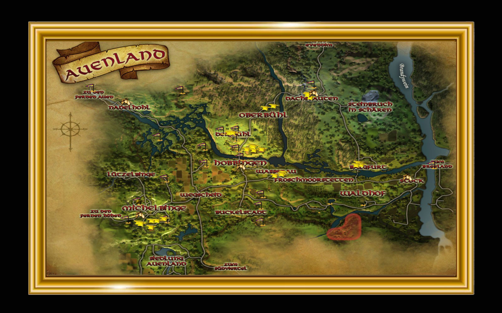 'Diese Fremden sind hier in der Gegend wirklich ein Problem. Ich bin mir ziemlich sicher, dass sie auf den Höfen Lebensmittel gestohlen haben, und es ist nur eine Frage der Zeit, bis sie richtigen Ärger machen werden.Diese Violetta ist wahrscheinlich in diese Richtung gegangen und in Schwierigkeiten geraten. Also, wenn Ihr mich fragt: Ihr solltet Euch um diese Raufbolde kümmern. Vielleicht sind sie ja einsichtig und verschwinden wieder dahin, wo sie hergekommen sind,Die Raufbolde, Räuber, die sie sind, lagern nicht weit von hier im Westen. Ihr Lager befindet sich auf dem Höhenzug von Engkleve, am Wasserfall vorbei im Süden. Es sieht ziemlich gefährlich aus, aber direkt vor der Stelle, an der sich das Wasser die Felsen hinunterstürzt, werdet Ihr eine Furt im Fluss finden.'