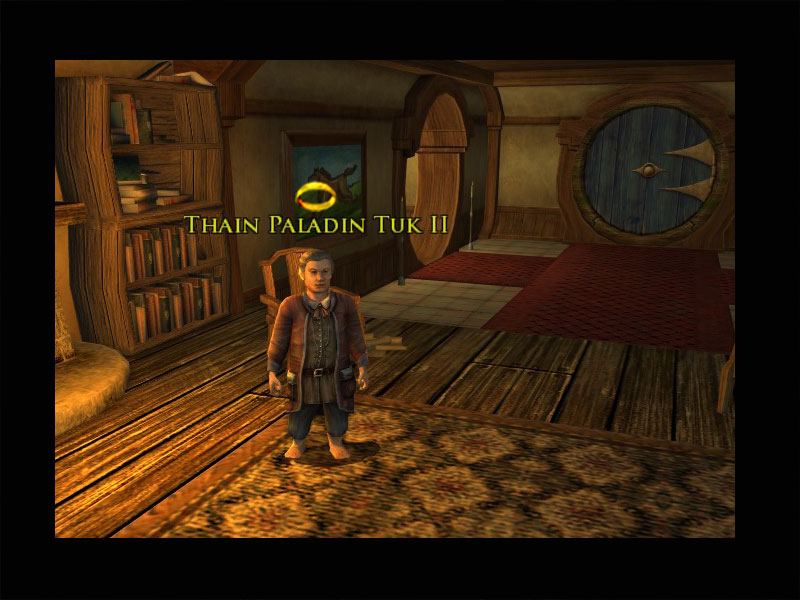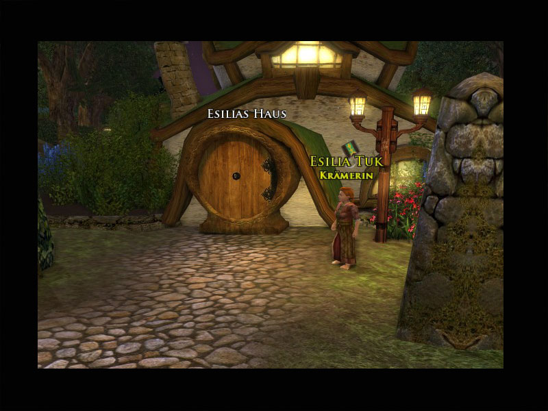 Esilia Tuk hat Euch in ihr Haus geschickt, um mit ihrem Vetter Gerebert zu sprechen. Gerebert hat Euch eine fantastische Geschichte über einen furchtbaren Turm in einem weit entfernten Land erzählt, in dem er einen seltsamen, in eine Robe gewandeten Menschen namens Scharrer gesehen hat. Er hat Euch gebeten, seine Geschichte dem Thain vorzutragen.