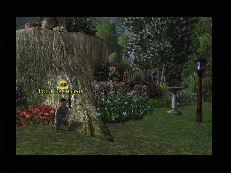 'Hallo! Würdet Ihr mir bei einer Runde Verstecken spielen helfen? Die Sache ist die: Meine Freunde Margerite und Polo haben mich heute zum Spielen überredet, obwohl sie sich immer am selben Ort verstecken. Das macht einfach keinen richtigen Spaß mehr.Es wäre also ausgesprochen nett, wenn Ihr sie diesmal für mich finden würdet. Wenn Ihr sie findet, dann gebe ich Euch eine Münze oder zwei, aber ich weiß einfach nicht mehr, wie oft es mir noch gelingen wird, ganz überrascht zu tun, wenn Margerite sich unter den Büschen bei Päonie Grubers Haus versteckt oder Polo hinter der geschnitzten Statue von Marcho und Blanco.Die Statue steht auf einer großen Baumwurzel etwas südlich von hier, und ich bin mir sicher, dort werdet Ihr Polo Dachsbau finden. Südlich der Statue gibt es einen kleinen Hügel mit mehreren Hobbit-Höhlen hinter einem Holzzaun. Margerite hält die Büsche rechts von Päonie Grubers Haus für ein gutes Versteck. Findet meine Freunde, und das nächste Mal schaffe ich es hoffentlich, ihnen vorher zu sagen, dass ich keine Lust mehr auf Verstecken spielen habe!'