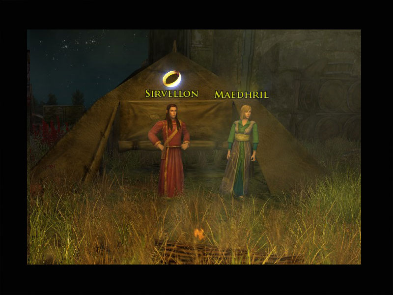 'Meine Schwester Maedhril hat einen Elb aus Imladris geheiratet. Er heißt Sirvellon und er hat eine Expedition in den Süden geführt. Die beiden lagern in der Nähe der verlassenen Stadt Caranost. Ihr Lager wird Sírlond genannt.''Ihre Liebe währt noch nicht lang - erst siebenhundert Jahre, wenn ich mich nicht irre. Manchmal glaube ich, die beiden sind blind für die Fehler des anderen. Sirvellon ist ein guter Elb, aber er ist noch kurzsichtiger als meine Schwester. Ich fürchte, er hat seinen Blick so starr auf die Orks gerichtet, dass er nicht genügend Vorräte beschafft, um das Lager zu versorgen.''Vielleicht möchtet Ihr mir helfen, hier in den Südhöhen Keilerfleisch und Luchsfelle zu beschaffen? Wenn wir sie Sirvellon und Maedhril schicken, müsste ich mir weniger Sorgen um sie machen.'
